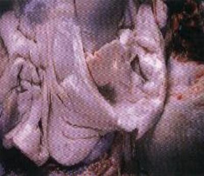 由病例1.及病例2.的剖檢羊隻中其共同病變為: